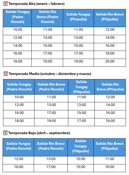 🧯 Nota: los días viernes se realiza un viaje adicional para carga peligrosa, con salida a las 08:00 desde Río Bravo y 09:00 desde Yungay.