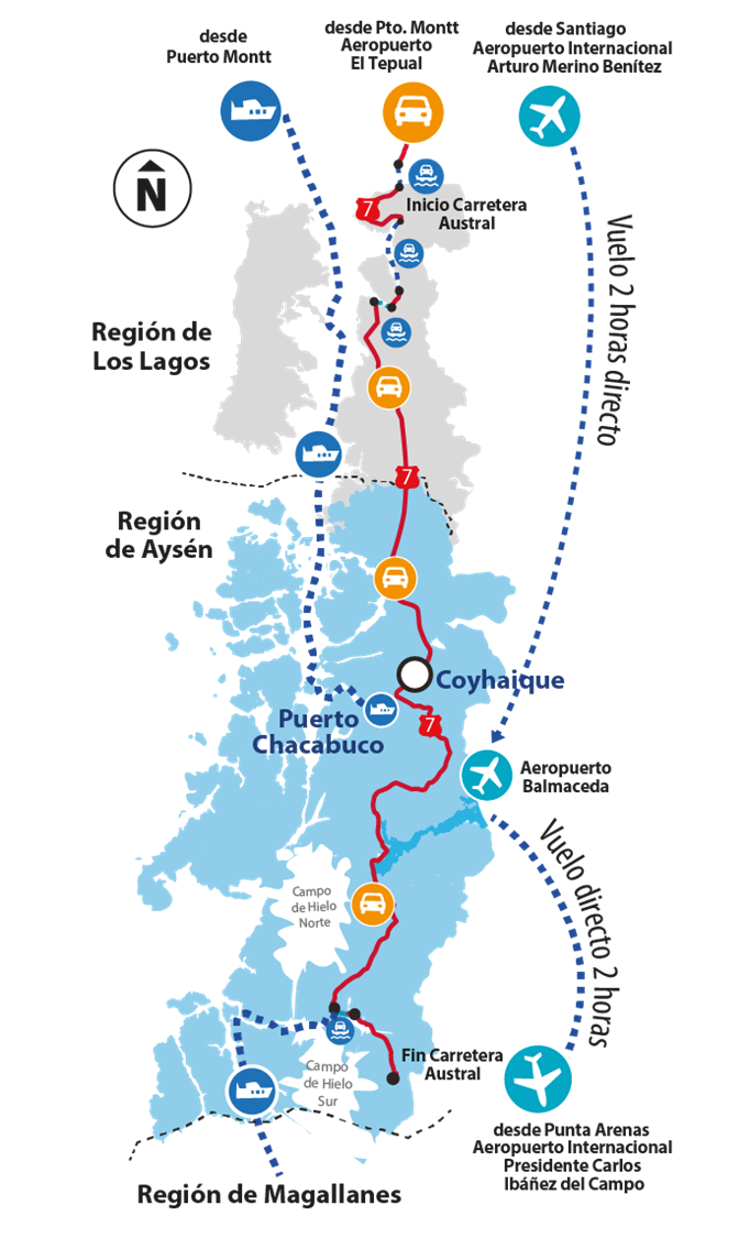 Para visitar el Destino Aysén Patagonia, es necesario que conozcas las tres vías por las que puedes acceder a este hermoso territorio (aérea, terrestre y marítima) Cuál utilices dependerá de tus motivaciones y del tiempo disponible para recorrer sus principales localidades y atractivos.